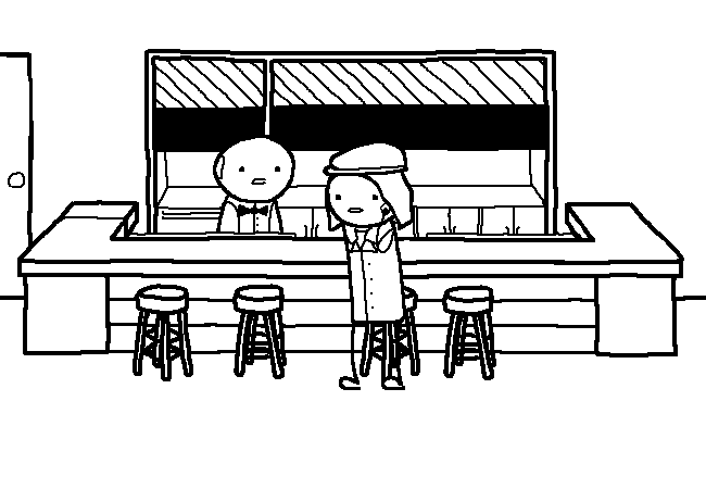 You've investigated a few things since you called PD, mostly the displaced dust by the window. Sadly, it came up with nothing. For now, you figure that the bartender might have a few more answers, and there is that woman who's cleaning sort of... away from you.