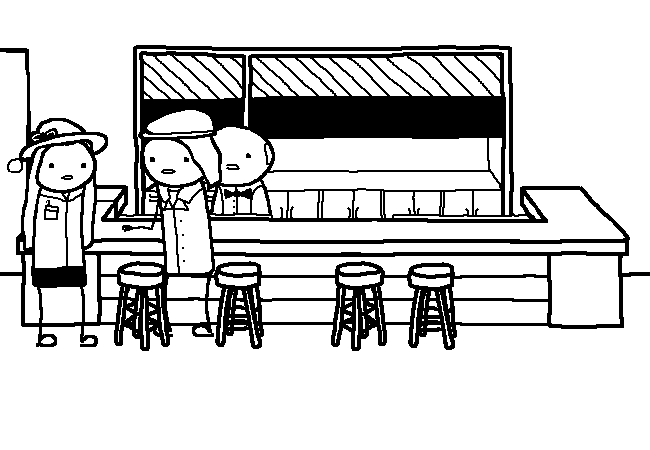 "Well, I'm not going to lie to you, because I know you're a good investigator, Dame. I'm working. I have to keep up the socialite look somehow, right?" She laughs, but suddenly becomes dead serious. "And you'll keep up the socialite look, too, right? You won't tell anyone that I work here?" From behind you, Amiable Bartender shifts over slightly, away from the two of you.