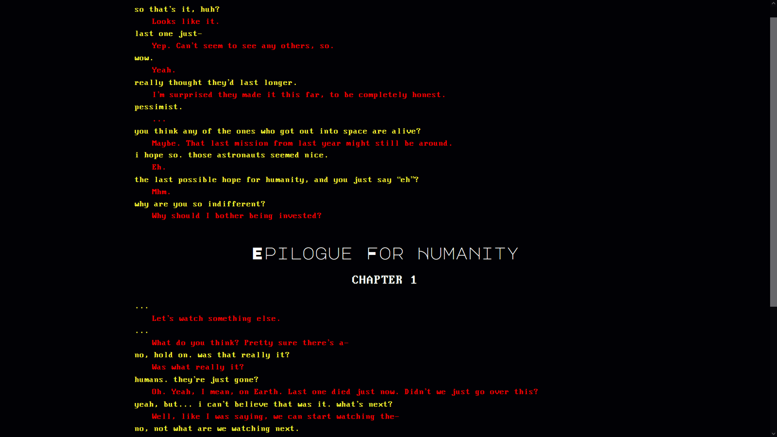 In writing, I specialize in interactive storytelling, my time studying it and practicing it turning into some online interactive narratives you can find on